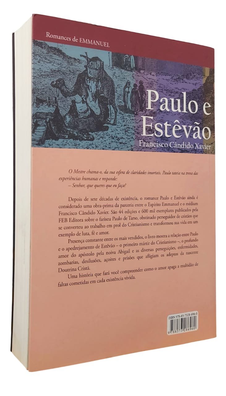 O Mestre chama-o, da sua esfera de claridades imortais. Paulo tateia na treva das experiências humanas e responde: ― Senhor, que queres que eu faça? Depois de várias décadas de existência, o romance Paulo e Estêvão ainda é considerado uma obra prima da parceria entre o Espírito Emmanuel e o médium Francisco Cândido Xavier. São milhares de exemplares publicados pela FEB sobre o fariseu Paulo de Tarso, obstinado perseguidor de cristãos que se converteu ao trabalho em prol do Cristianismo e transformou sua vida em um exemplo de luta, fé e amor. Presença constante entre os mais vendidos, o livro mostra a relação entre Paulo e o apedrejamento de Estêvão ― o primeiro mártir do Cristianismo ―, o profundo amor do Apóstolo pela noiva Abigail e as diversas perseguições, enfermidades, zombarias, desilusões, açoites e prisões que afligiam os adeptos da nascente Doutrina Cristã.