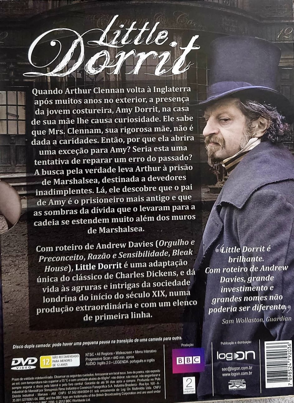 O aclamado roteirista Andrew Davies (Orgulho e Preconceito, Bleak House) traz para DVD uma nova adaptação de Dickens estrelada pelo indicado ao Oscar Tom Courtenay (A Bússola de Ouro), Matthew Macfadyen (MI-5, Orgulho e Preconceito) e a estreante Claire Foy (Ser Humano). ). Esta nova série emocionante dá vida à poderosa história de luta e sofrimento de Dickens na Londres da década de 1820. Quando Arthur Clennam (Macfadyen) retorna à Inglaterra depois de muitos anos no exterior, sua curiosidade é despertada pela presença na casa de sua mãe de uma jovem costureira, Amy Dorrit (Foy).